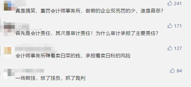 还有人认为,虽然会计师也有责任,但是现在事务所也很难办。底稿一年比一年厚,还是很难查实数据。